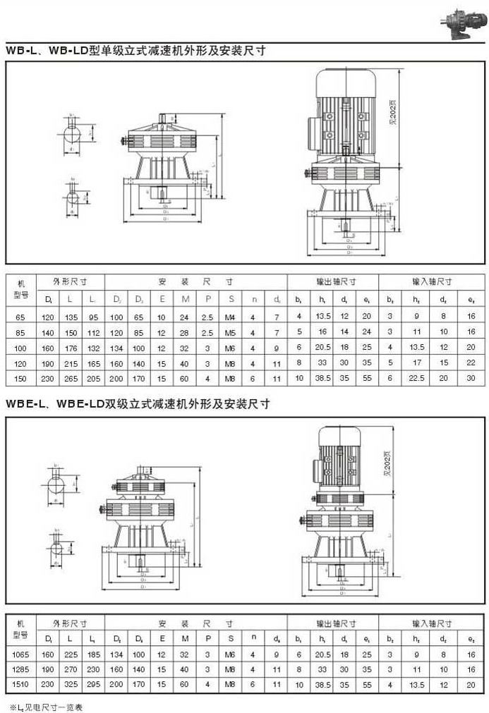 WB-L . WB-LD型單級立式減速機(jī)外型圖,安裝尺寸WBE-L . WEB-LD雙級立式減速機(jī)外型圖,安裝尺寸
